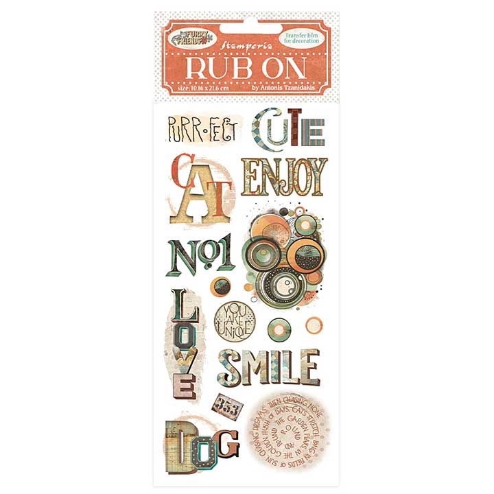 Stamperia Furry Friends Rub-On 4x8,5 Inch Writings